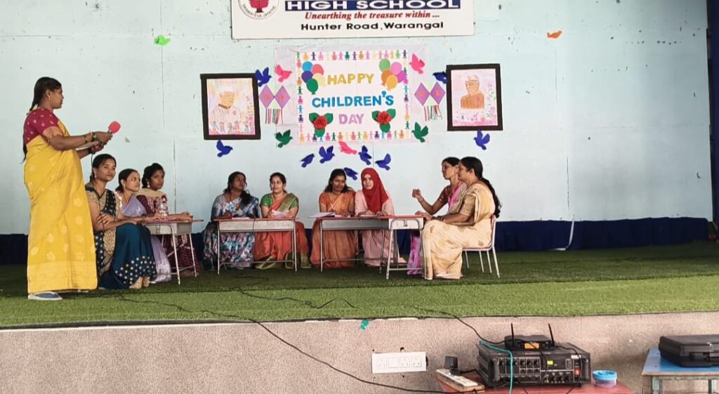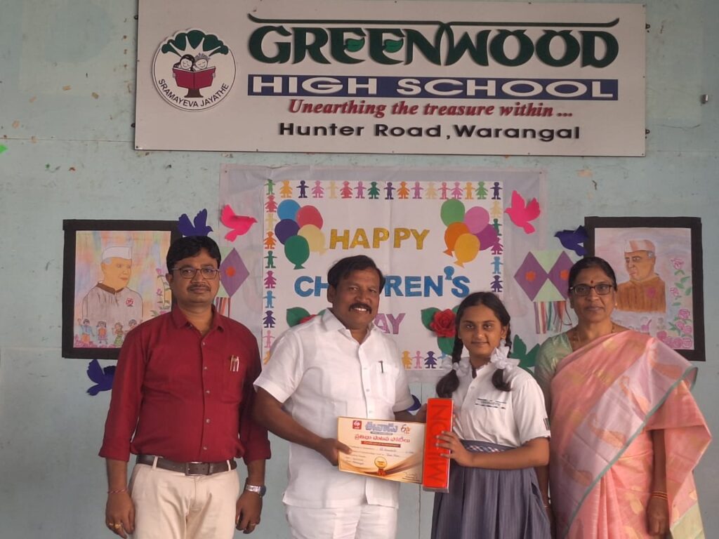 Greenwood High School celebrated Children’s Day with joy and enthusiasm on 14th November 2025 as the Greenwood High School teachers took the lead in presenting a memorable program. The event began with a thoughtful message by Spandana mam, followed by inspiring speeches from Shivaji Sir and Shivanand Sir. A heartfelt poem by Rida added a warm emotional touch and a new word introduced by Tasleem added colour to the celebration.